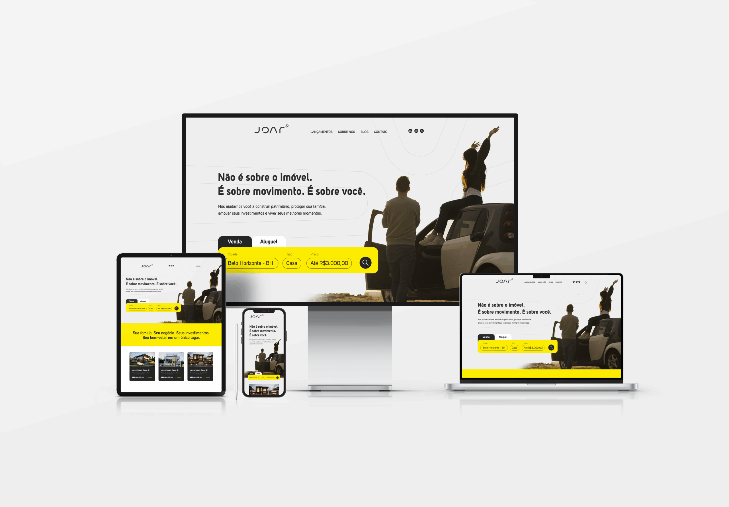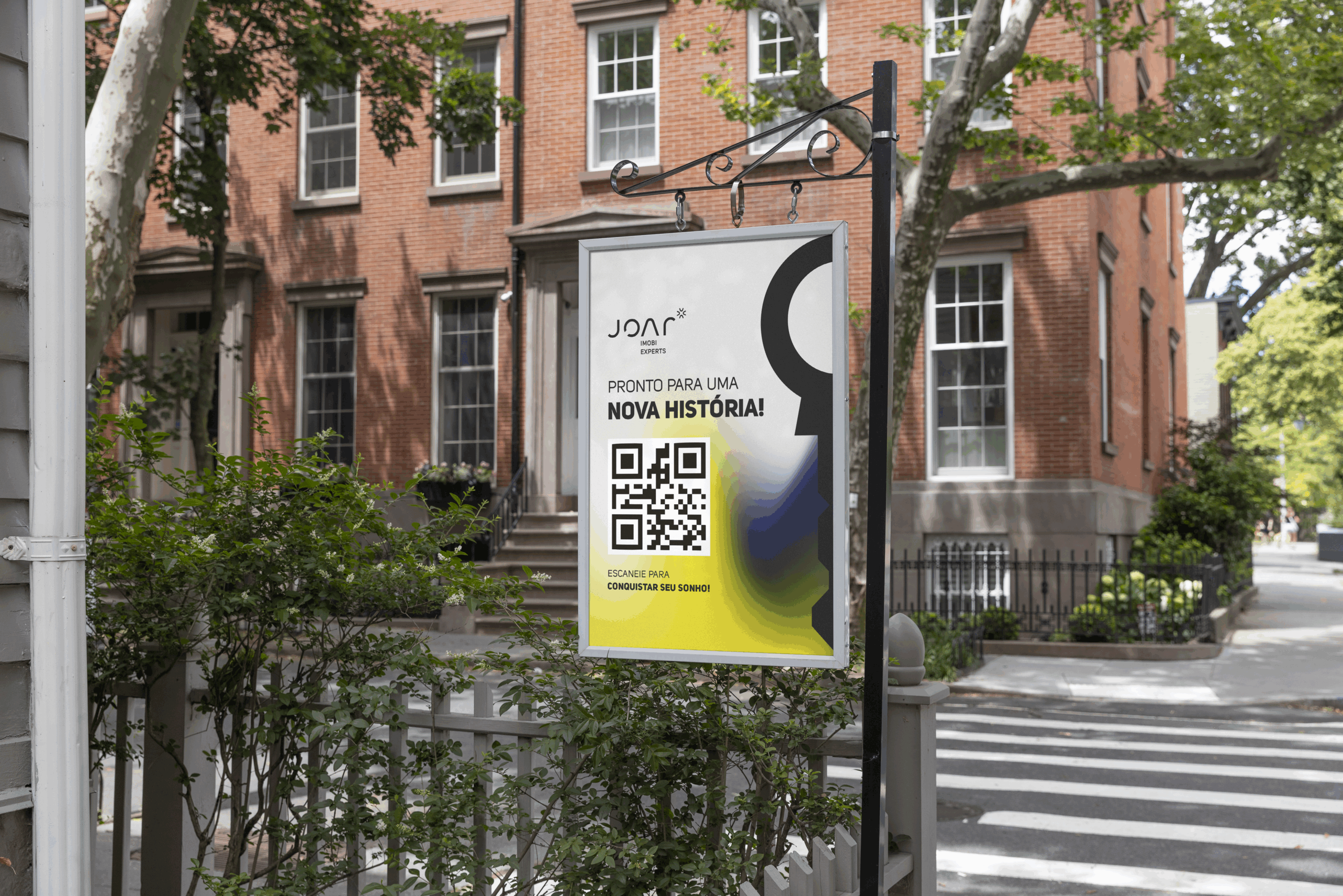 Nosso trabalho se propôs a desenhar essa identidade: cores que escapam do lugar comum para gerar reconhecimento, voz que transmite confiança e originalidade, narrativa que mostra que Joar Imobi não vende casas — facilita vidas, conecta histórias, constrói lares. Uma marca que se sente diferente antes mesmo de ser escolhida.